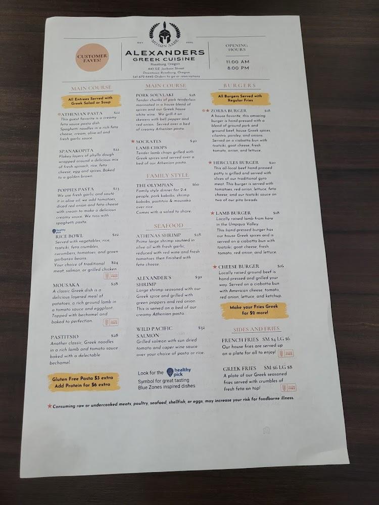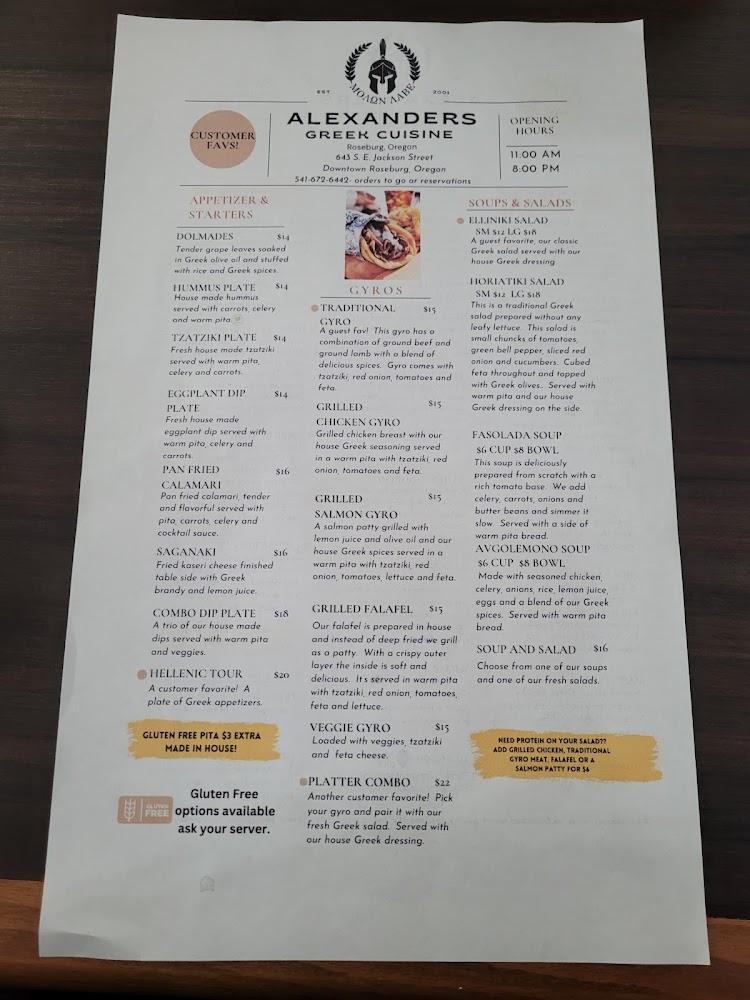 The menu at Alexander's Greek Cuisine features a rich array of traditional Greek dishes. Starters include classic favorites like dolmades, hummus, and calamari. Each dish is carefully prepared, highlighting fresh ingredients and authentic flavors.